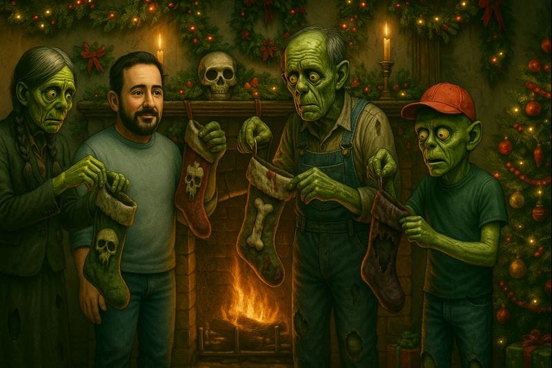 This week, I had the unique pleasure of joining the Zombie family as we prepared their cozy—well, cozy for zombies—living room for the holidays. Working side by side with Celeste, Griswold, Mortie, and the rest of the gang reminded me just how meaningful these small traditions can be, even when your decorating partners are technically… no longer alive.