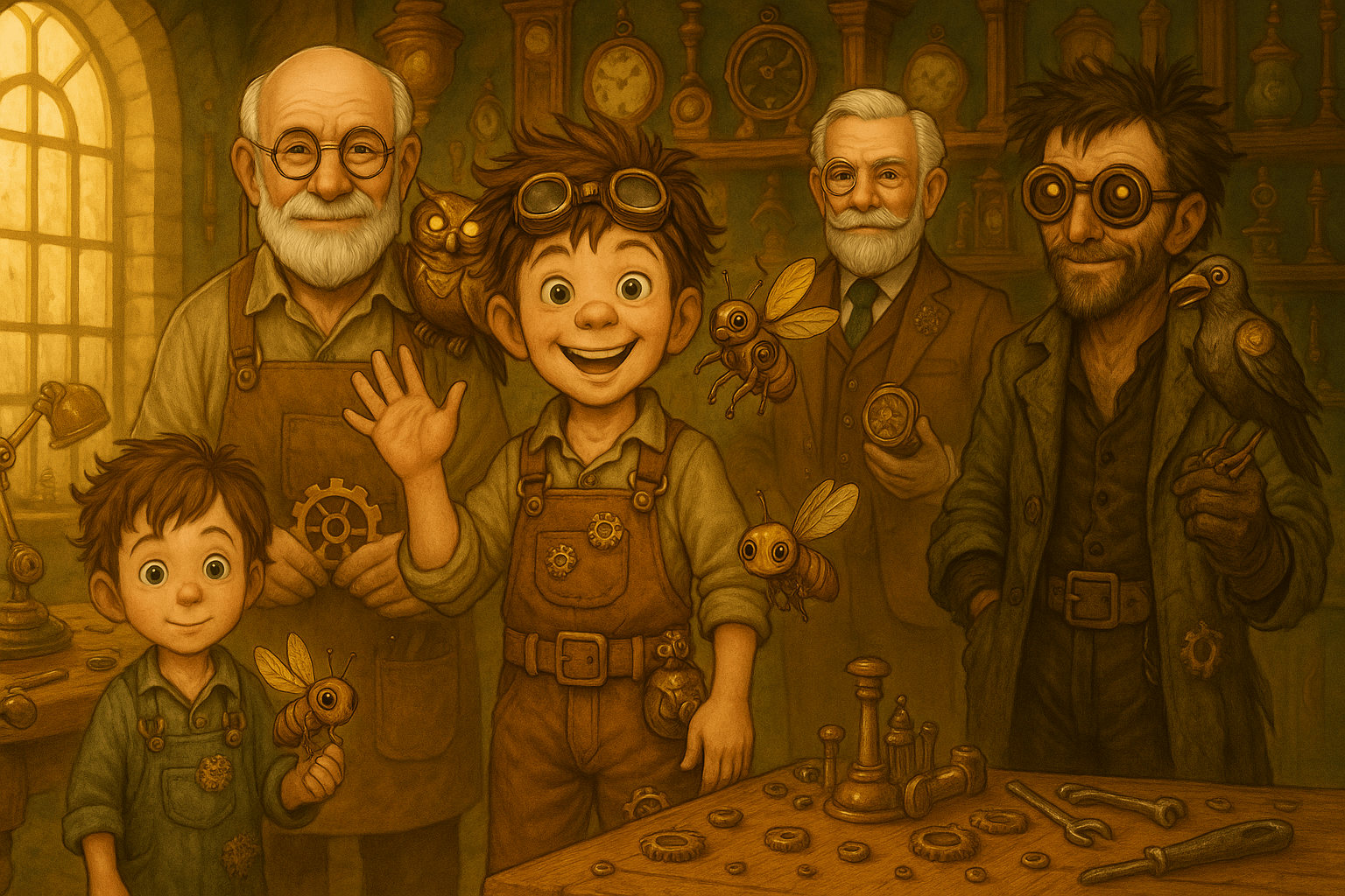 Meet Finnigan “Finn” Gearhart, an eight-year-old inventor with a heart as golden as his brass goggles. When Mayor Cogsworth’s beloved music box vanishes, suspicion clouds the city—but Finn has a secret ally: the Courageous Compass, a glowing antique that points the way toward kindness, patience, and forgiveness.